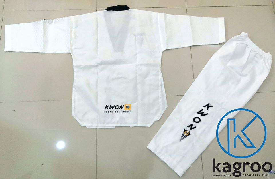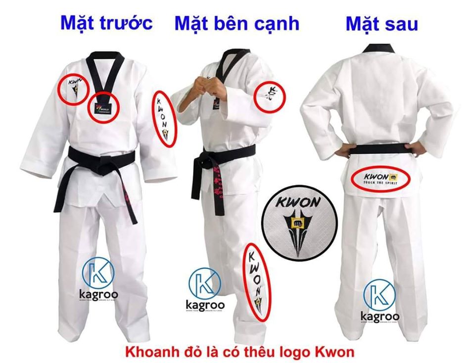 - Logo Kwon Star Fighter được thiết kế trên ngực áo phải, ống tay áo và ống quần trái, phía sau lưng áo.